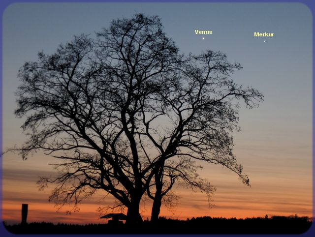Uhr: Es ist bereits ziemlich dunkel. Venus und Merkur sind sehr gut